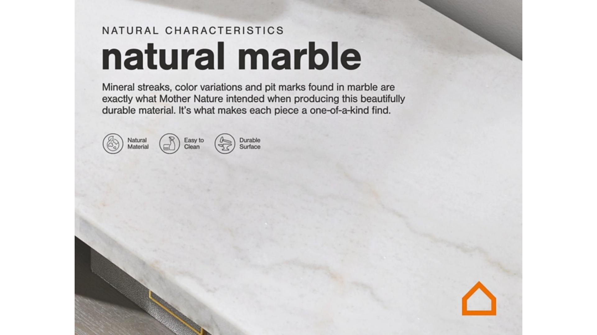 - Color variations, fissures, mineral deposits and veining in the marble top are naturally formed characteristics