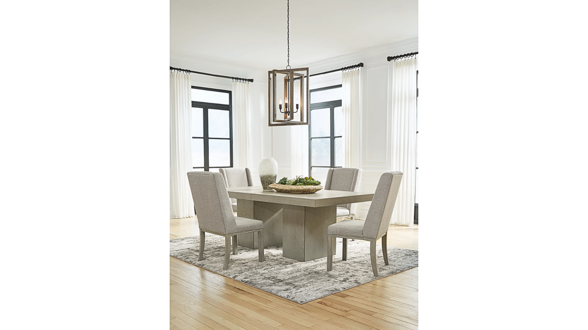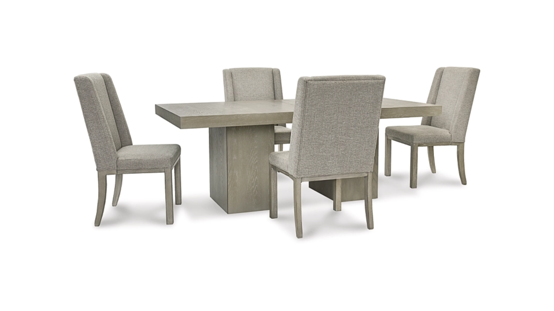 The Fawnburg dining package has a clean, contemporary design with a relaxed sensibility. Its sturdy silhouettes sport a trend-right gray taupe finish. For those inclined toward modern stylings, this set is sure to please.