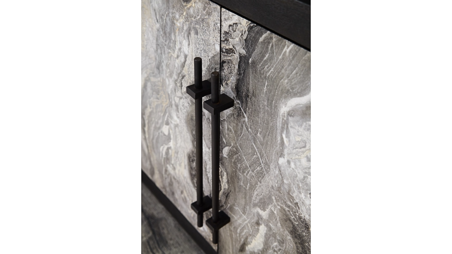 Make your home a mecca for modern opulence. Black finishes pair with faux marbled door fronts to create the luxe Lakenwood accent cabinet. The doors open to reveal two shelves, ideal to help you hide away extra china, linens or everyday clutter in high style.