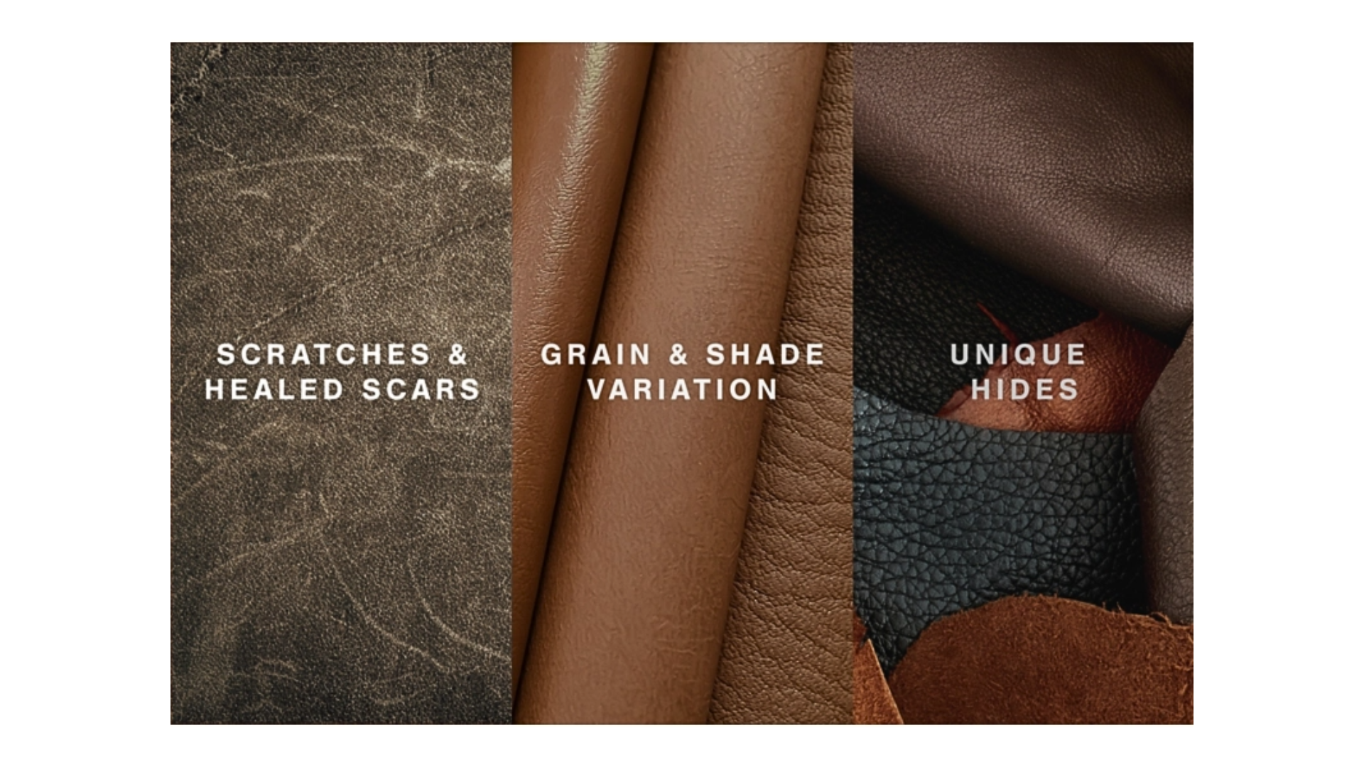 - Natural variations make each hide unique and do not detract from the wearing qualities of leather
